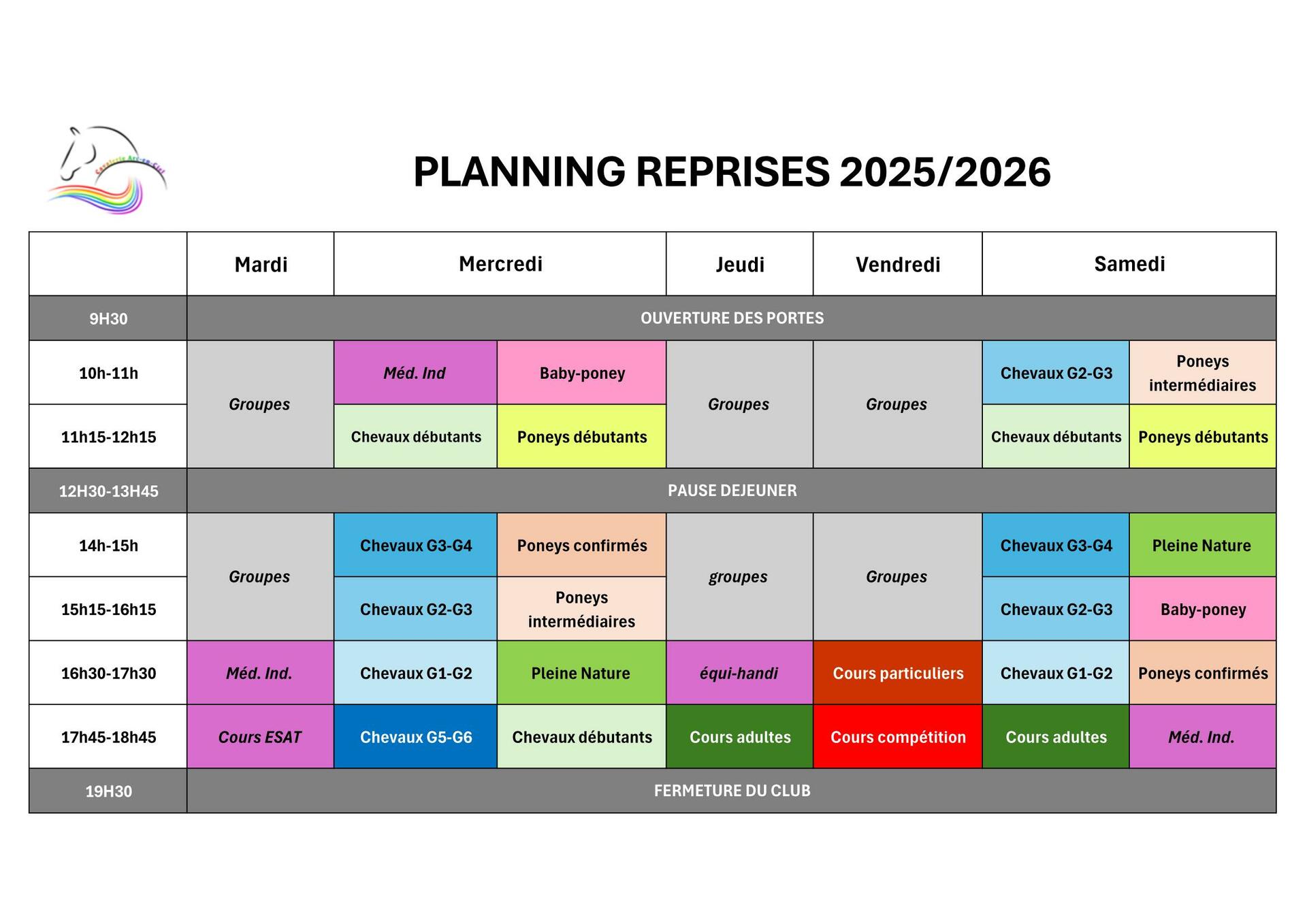 Planning reprises rentrée 2025